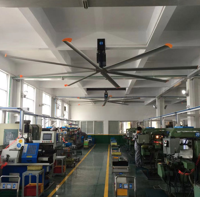 大型工業吊扇直徑達5-7米,功率為1.5千瓦,風力柔和、無噪音,能滿足200-500平方米的室內降溫、通風等要求。
